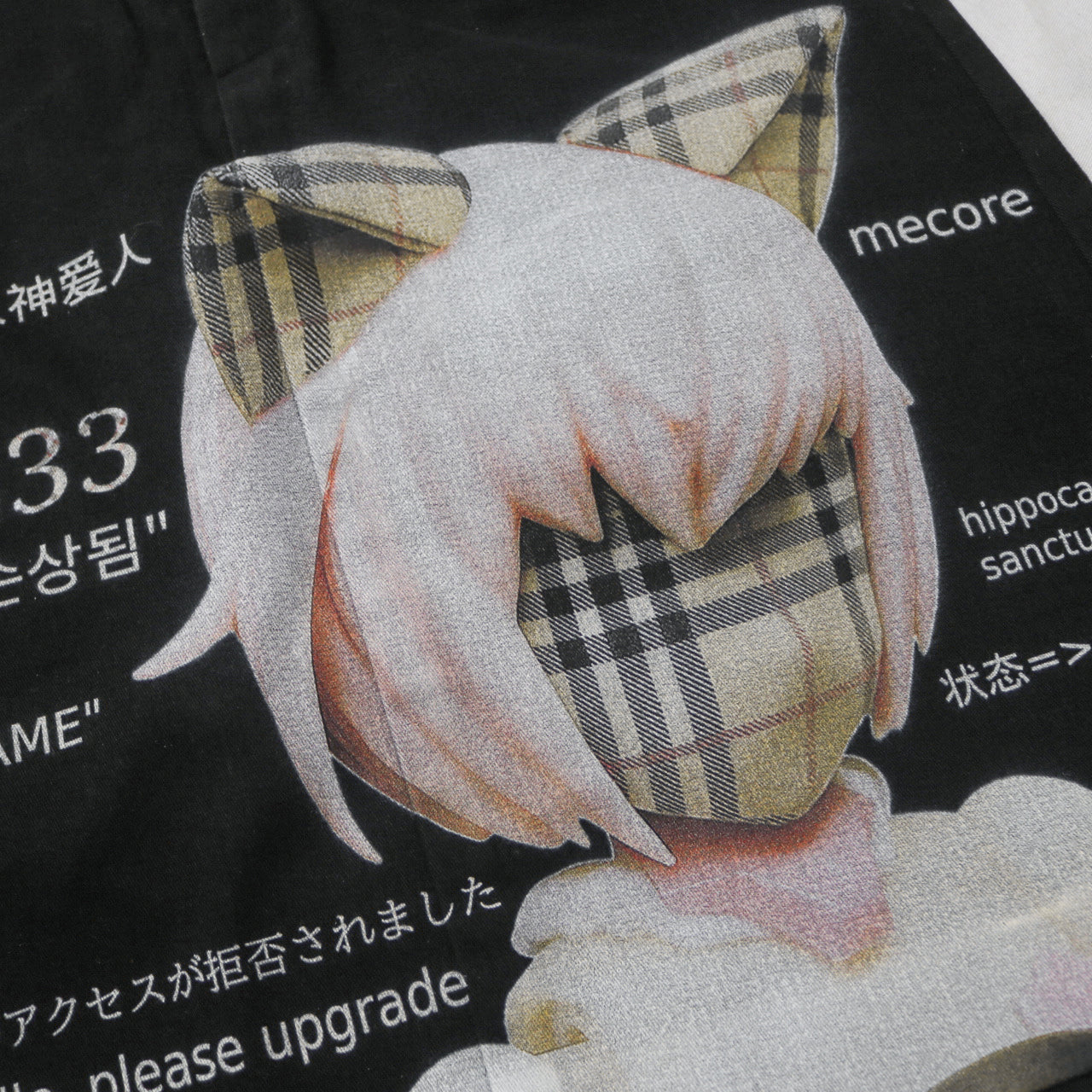 Features: black; graphic print to the front and the back; Nova check print trim; side pockets; A-line; knee length. Made in Japan.
