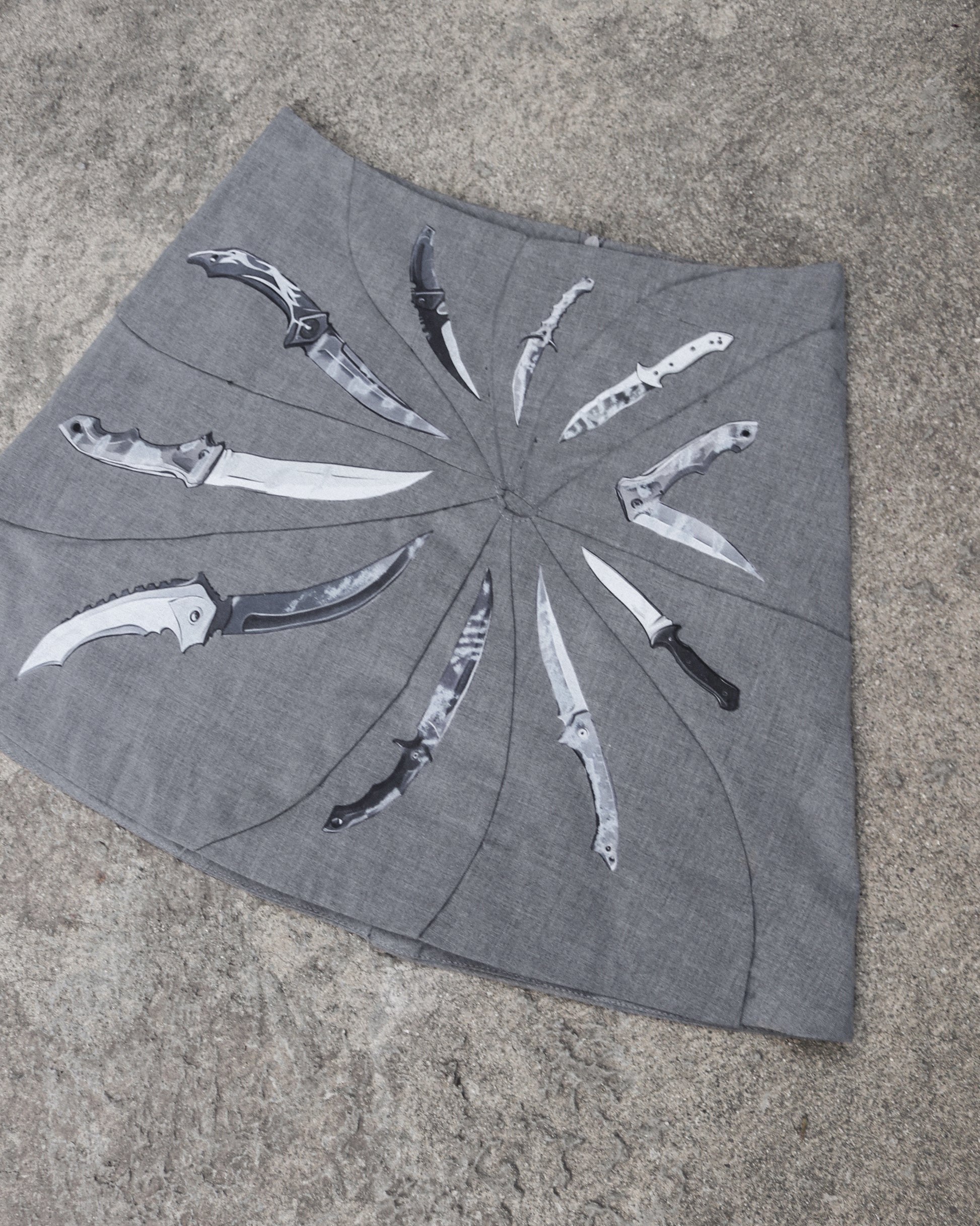Features: gray; graphic print; spiral paneled construction; woven fabric; mid-rise fit; hidden shorts underneath.