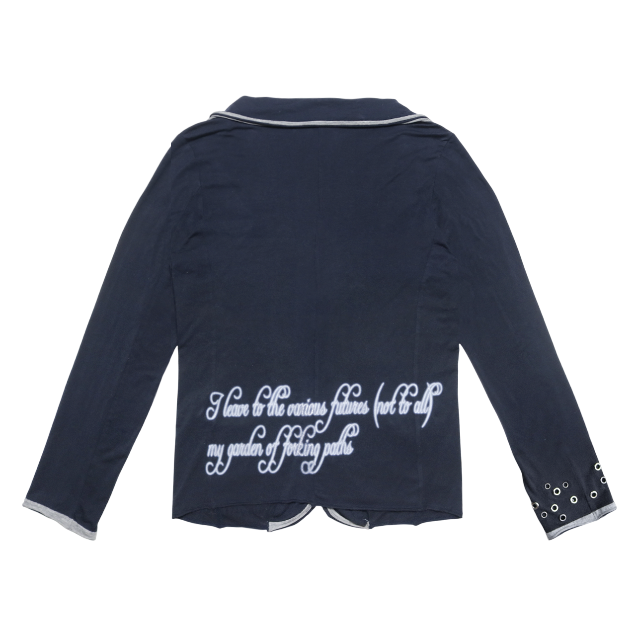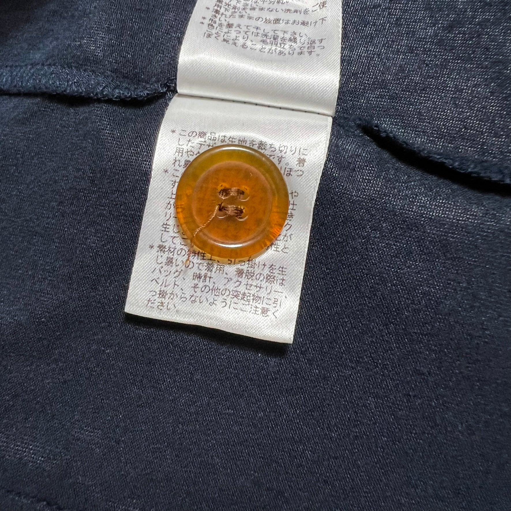Features: navy; graphic print to the front and back; contrast trim; front patch pockets; front button fastening. Made in Japan.
