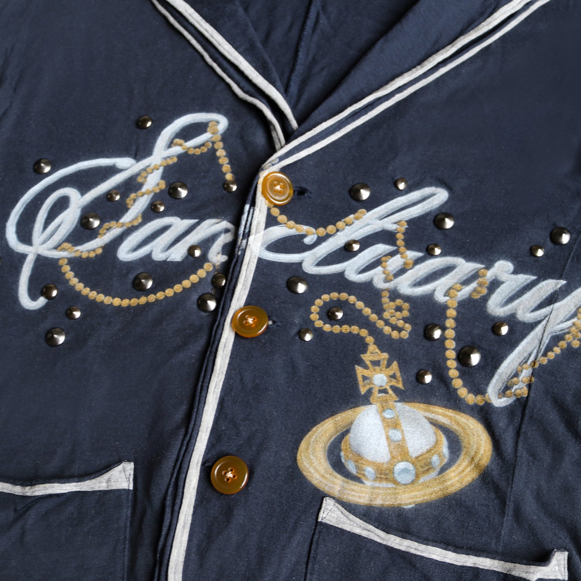 Reworked in Los Angeles from a pre-owned Vivienne Westwood jacket, in good condition with minor signs of wear.