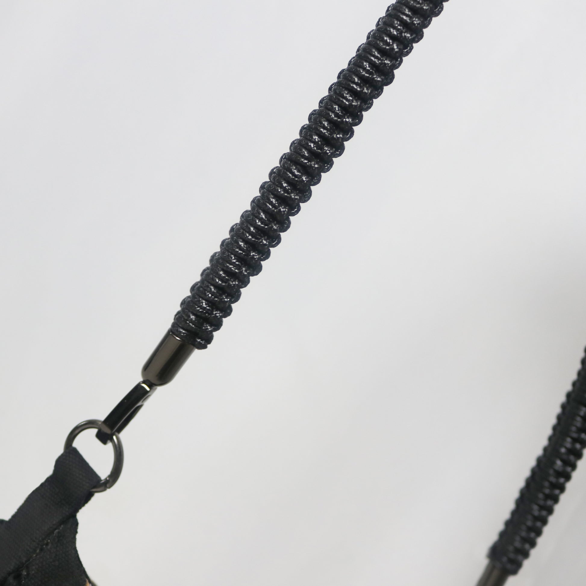 Features: black; canvas; graphic print to the front and back; top zip closure; braided shoulder strap; removable & wearable navel ring charms.