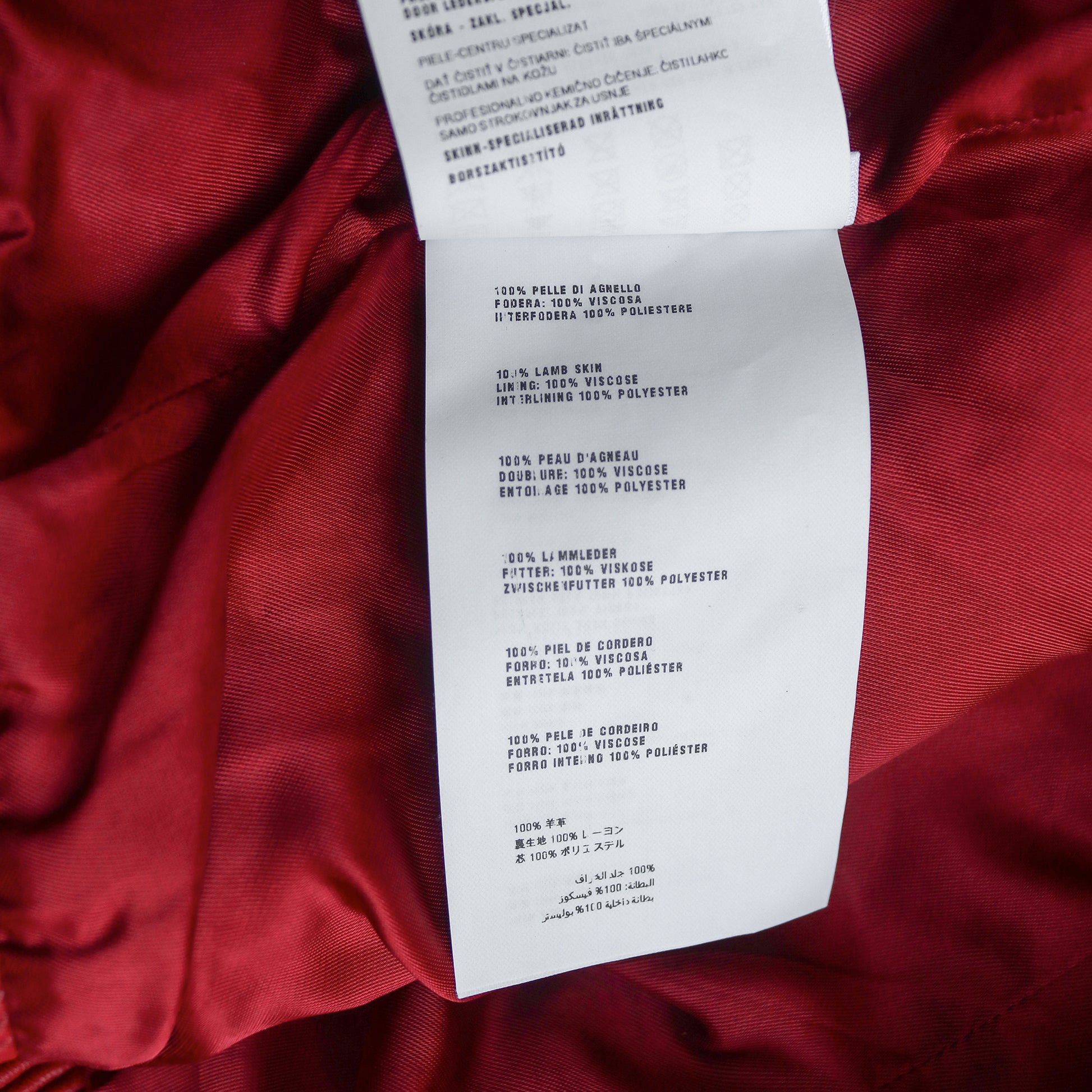 Features: crimson red; ruffle detailing; full zip closure; pointed collar; ribbed cuffs and hem. Made in Italy.