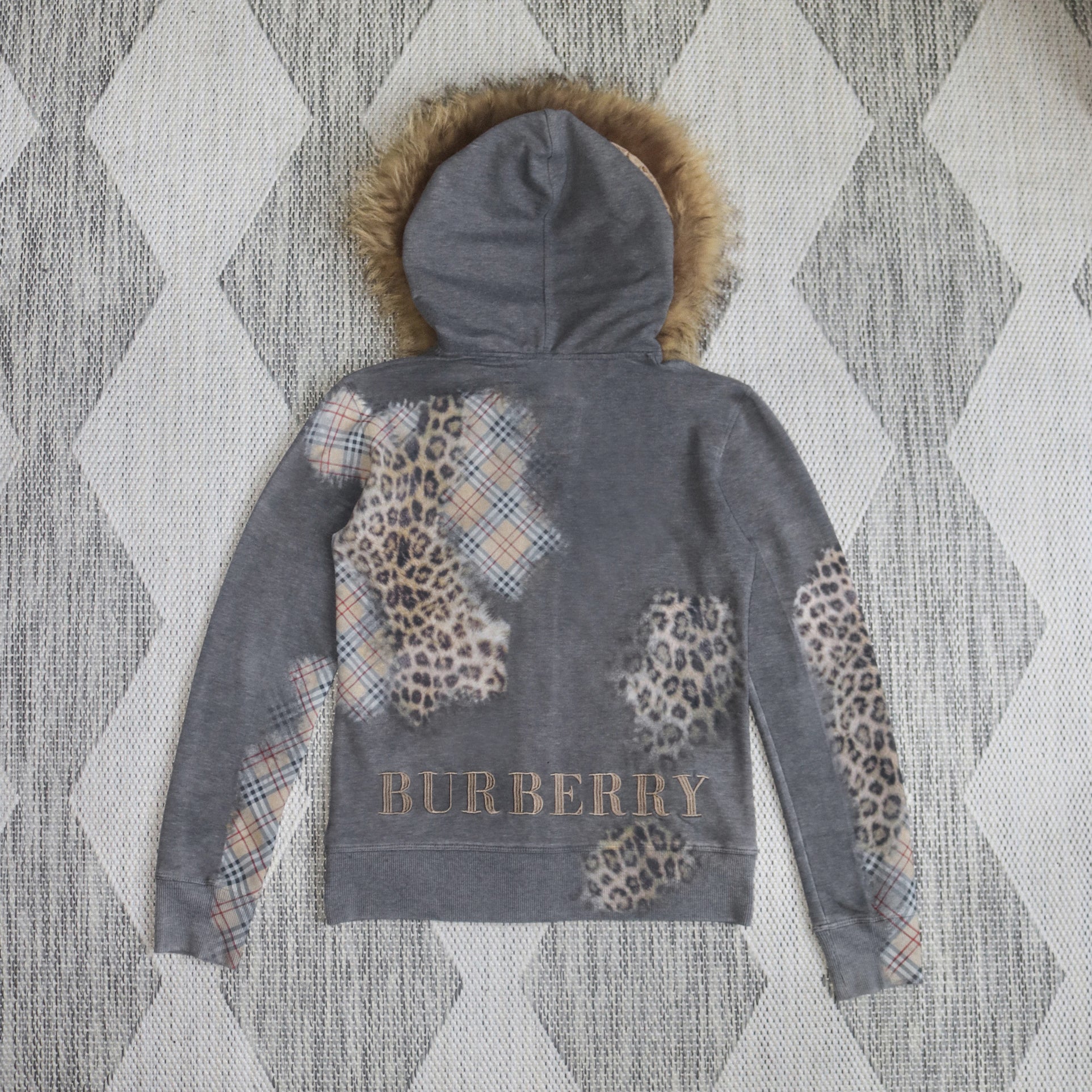 Reworked in Los Angeles, using pre-owned hoodie and skirt from Burberry, in good condition, minor signs of wear.