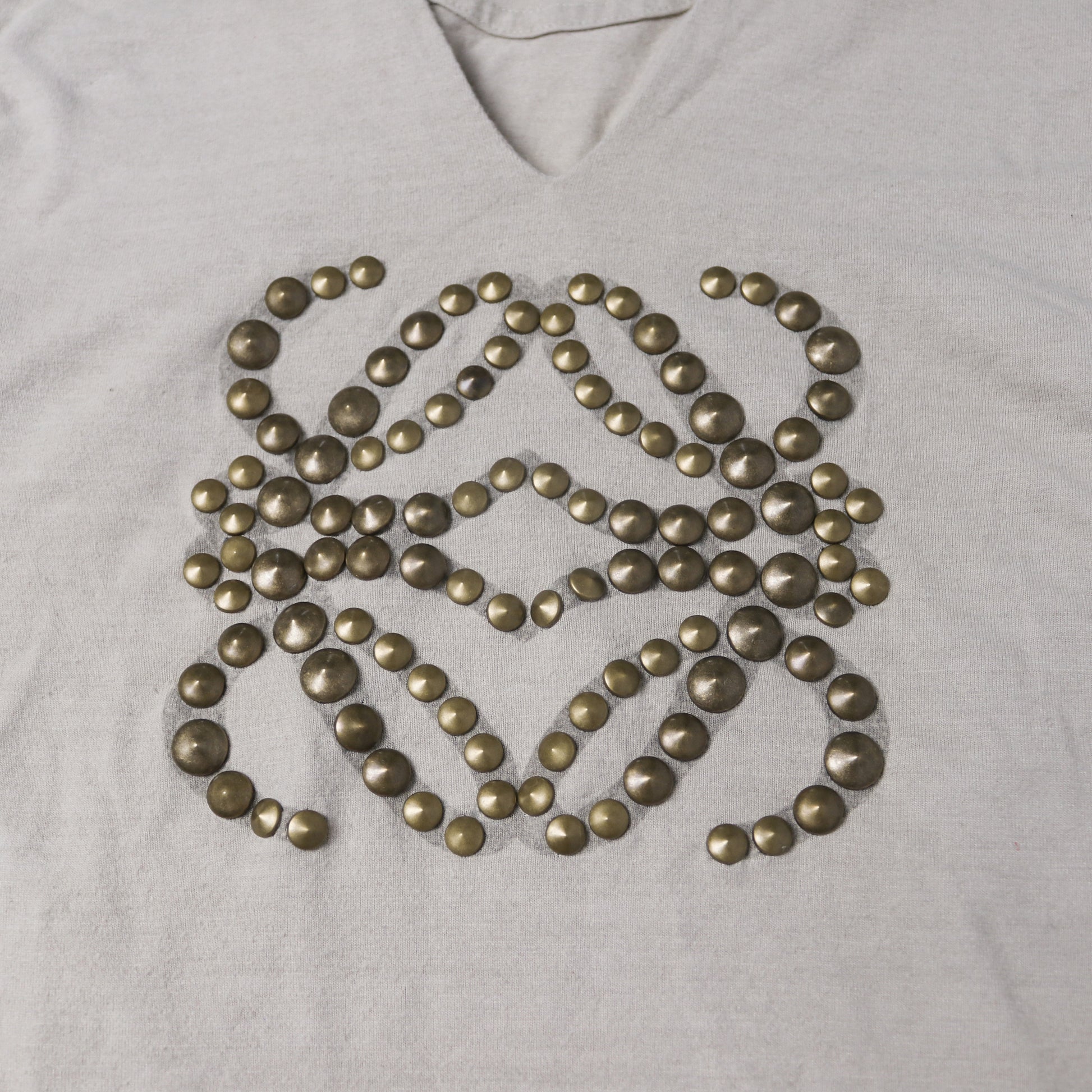 Reworked in Los Angeles from a vintage Loewe top from the 2000s, featuring studded anagram motif at the front. In good condition with minor surface pilling throughout, no noticeable flaw.